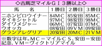2年続けて最強牝馬で圧勝したルメール。アーモンドアイとどちらが強い?そんな問いにはこう答えた。「アーモンドアイはG1・9勝、2400メートルまで勝った。だから現時点ではまだ少し上。でもグランアレグリアは(昨年の)安田記念でアーモンドに勝った。同じくらいのレベルにある馬。まだまだG1を勝てます」。日本競馬が誇る名トレーナーと名手の最強タッグが、アレグリアをさらなる高みへと昇華させる。