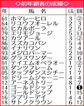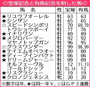 【宝塚記念連覇なら史上2頭目】宝塚記念と有馬記念のグランプリ3連覇を達成すれば、スピードシンボリ(69年有馬→70年宝塚→同年有馬)、グラスワンダー(98年有馬→99年宝塚→99年有馬)に続く、3頭目の快挙(グランプリ3勝は他にオルフェーヴル、ゴールドシップが記録)。宝塚記念連覇ならゴールドシップ(13→14年)以来、7年ぶり史上2頭目となる。