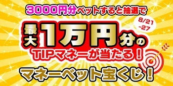 「3,000円分ベットすると抽選で最大1万円分のTIPマネーが当たる!マネーベット宝くじ!」を開催!