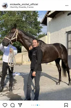 美しすぎる騎手として日本の競馬ファンを魅了したフランスの人気女性ジョッキーのミカエル・ミシェル(26)が26日に自身のツイッターとインスタグラムを更新。仏G1凱旋門賞(10月3日、パリロンシャン)に挑戦するディープボンド(牡4=大久保)との写真を公開した。