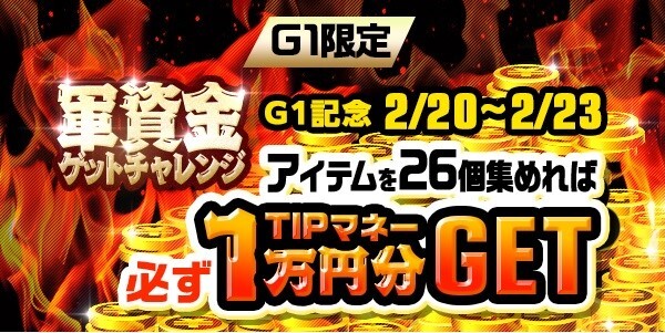 GⅠ限定企画 条件クリアで必ずTIPマネー1万円! 軍資金ゲットチャレンジ!!