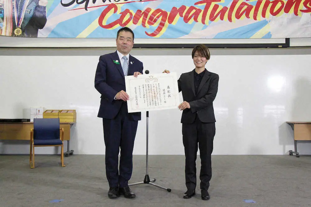 遠藤エミを滋賀県知事が表彰 女子初のSG制覇の偉業を祝福