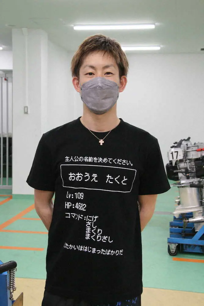 初日は6Rまでに逃げ決着が5回。序盤はイン優勢の傾向が続いた。この流れを変えたのが7Rの大上だ。スタートは内2艇に先行されたが、3コースからの果敢な外マイで快勝。「捲り差せそうになかったから握ったら決まった。たまたまです」と、シリーズ最初の捲り勝ちに笑みがこぼれた。まだ仕上がりには不満が残っているが「名前を読み間違えられることが多いので」とTシャツでアピールする大上。1号艇の2日目3Rで連勝を飾り、再び全国のファンに自らの名前を売り込む。