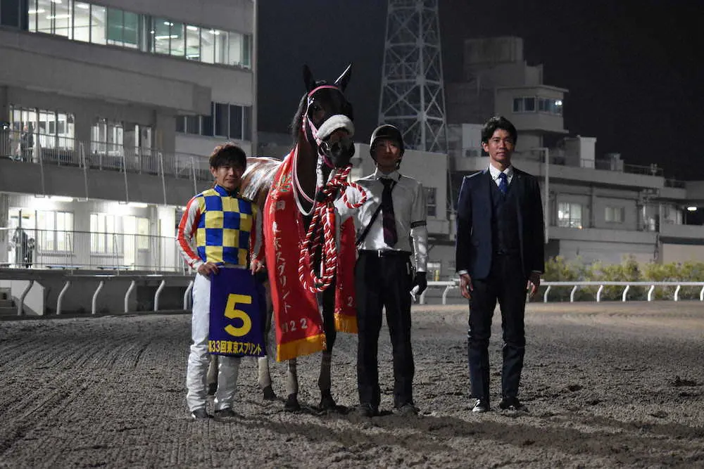 「ゴールでは(勝ったかどうか)分からなかったが何とか出ていてくれと思っていた。結果が分かってホッとしたし、凄くうれしかった。前半、余裕を持っていいポジションが取れたのが大きかった。これからが凄く楽しみ」と相棒を褒めちぎった。次走は未定だが、いずれにしてもまだ4歳。ダート短距離界に新星が現れたことは確かだ。