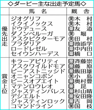 父キズナは13年に京都新聞杯を制し、ダービー馬となった。夢が広がる。藤原師は「何もなければそうなるだろうね」と話し、岩田望は「僕自身、初めてのダービーになる。無事に向かえれば」と先を見据える。昨年、シャフリヤールでダービーを制した名門厩舎が今年は師弟コンビで頂点を狙う。