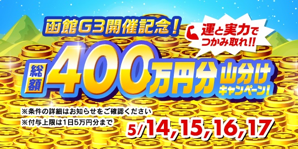 函館G3開催記念 総額400万円分山分けキャンペーン