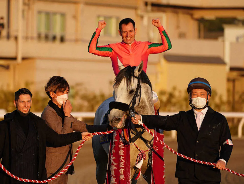 4月17日のアンタレスSを制したオメガパフューム(牡7=安田翔)はM・デムーロとコンビ再結成で帝王賞(6月29日、大井)に向かうことが21日、分かった。アンタレスS当日はM・デムーロが中山で騎乗しており、横山和との初コンビで勝ち切った。安田翔師は「ミルコは大井の特徴、馬のことをよく分かってくれていますので」と乗り慣れた鞍上に全幅の信頼を置く。現在、宮城県の山元トレセンで調整を進めている。6月上旬に栗東に帰厩。過去3年の帝王賞は1、2、5着で4年連続参戦となる。