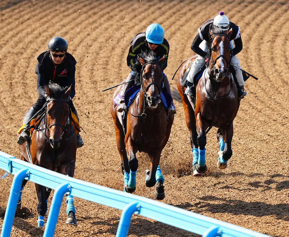 オニャンコポンはWコースで、先行したメレカリキマカ(4歳1勝クラス)を外に、後ろから追いついたミユキアイラブユー(3歳1勝クラス)を内に見ながらの3頭併せで併入。6F84秒0~1F12秒3と時計は控えめだが、軽快なフットワークから好調ぶりが伝わる。騎乗した菅原明は「皐月よりいい状態で臨める。我慢が利くし瞬発力もある。自在性が武器なので東京でも不安はない」と力強かった。