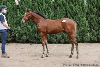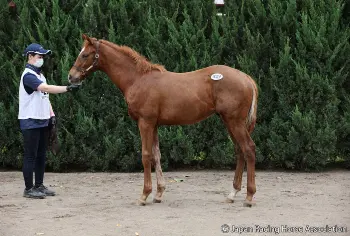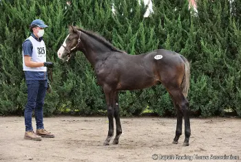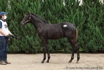 デビュー戦のパドックを歩くオマタセシマシタ(ホッカイドウ競馬提供)