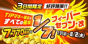 【大好評!】TIPマネー確定&当選確率ALL1/7!「フィーバーセブン・改」開催!