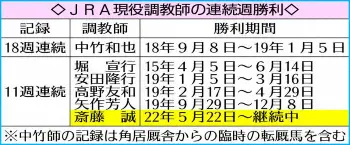今週も斎藤誠厩舎!“現役最長”12週連続Vへ 9頭スタンバイ
