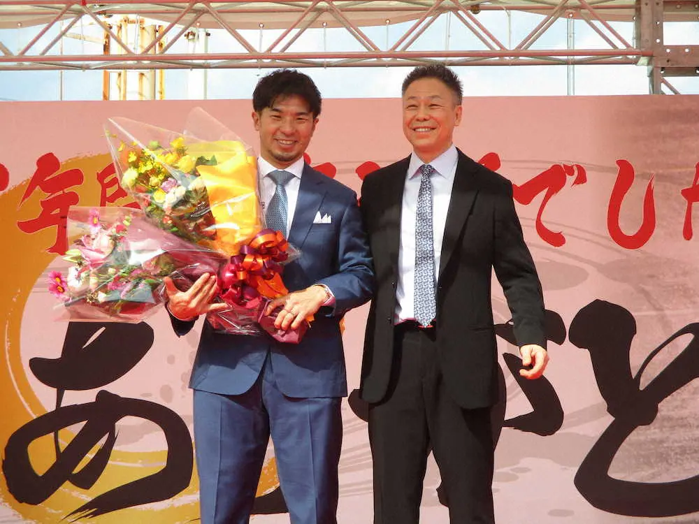 村上氏は「引退してさっぱりした気分だったんですが、みなさん(ファン)の顔を見ると寂しさを感じます」と話した。選手仲間のビデオメッセージの後、登場した心の師匠と仰ぐ松本整氏(63=45期・引退)が姿を見せると「ここまで頑張ってこられたのは松本さんのおかげです」と万感の思いがこみ上げたのか涙を拭った。最後に「28年間ありがとうございました。みなさんの“魂の声援”のおかげで頑張れました。みなさんと一緒に競輪を応援したいと思います」と話し、思い出の詰まったバンクを後にした。