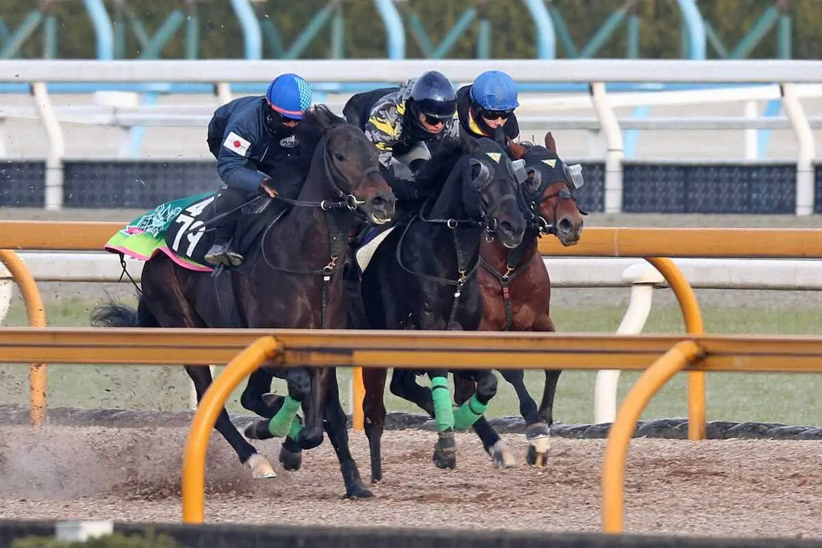 3頭併せで追い切られたジャスティンパレス(中)