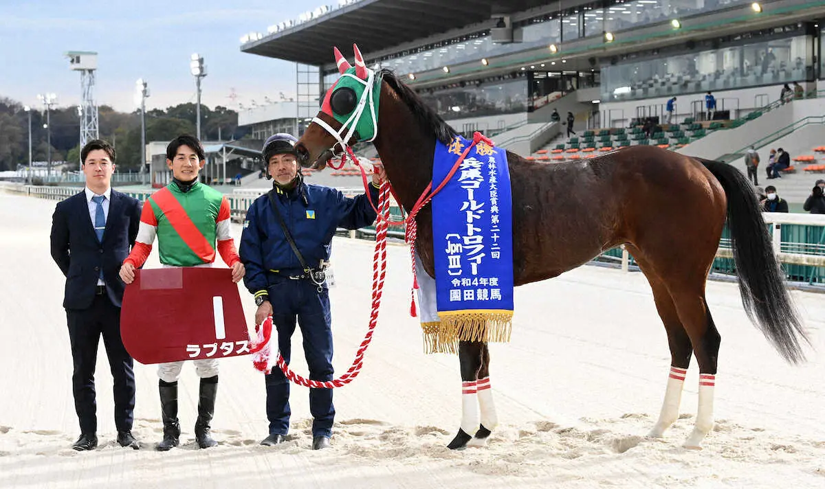 交流重賞「第22回兵庫ゴールドトロフィー」が21日、園田11Rで行われ、3年連続(3、2着)の参戦となったラプタスが直線で抜け出して、このレース初制覇。サマーチャンピオン(21年9月)以来となる重賞5勝目を飾った。ハンデ59キロも苦にせず3番手のインを追走。4角で馬群を割り、一気に抜け出した。幸は「返し馬へ行った時の雰囲気が最近の中では一番良さそうだった。自分の形ではなかったが終始、手応えが良かった。このような競馬ができるので、まだまだやれると思う」と笑顔を見せた。