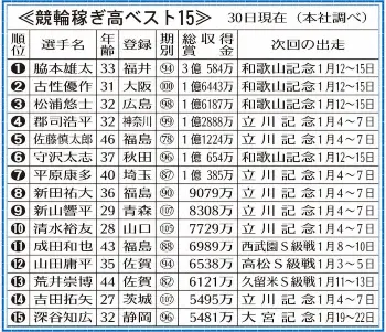 ○…脇本の年間獲得賞金は競輪史上最高というだけでなく、公営競技最高でもある。ボートレースで02年、植木通彦(引退)がグランプリを含む年間SG3勝で2億8418万4000円を稼ぎ出した。これが公営競技歴代トップだったが脇本は20年ぶりに更新した。なお、プロ野球で年俸3億円を超えるのは20人(以下推定)。中田翔(巨人)、源田壮亮(西武)らが3億円で契約した。