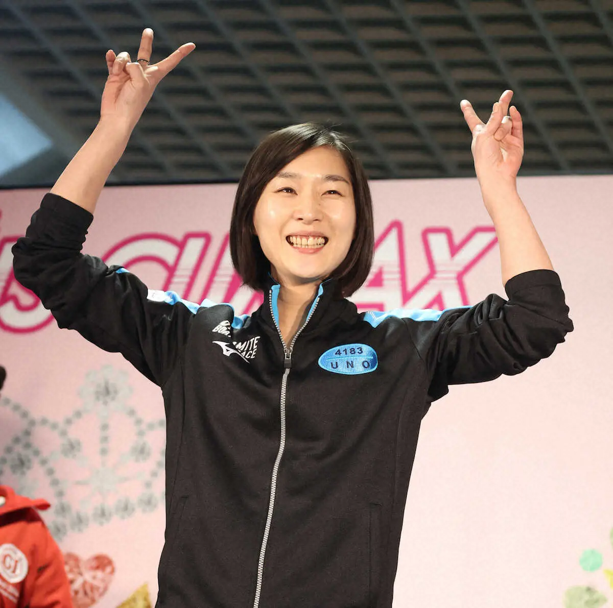 クイーンズクライマックスシリーズ戦を制し、笑顔でピースをする宇野