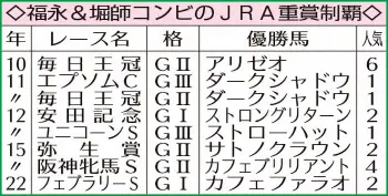 今月限りで騎手生活に別れを告げる福永との新コンビ。堀師のJRA通算715勝中、4位の47勝(1位は石橋脩の108勝)を挙げる強力タッグだ。同コンビで重賞8勝(G12勝)。タスティエーラの父サトノクラウンをクラシック舞台に飛躍させた15年弥生賞Vも福永が導いた。父の特徴も知る名手が“G1進出請負人”となるのか?