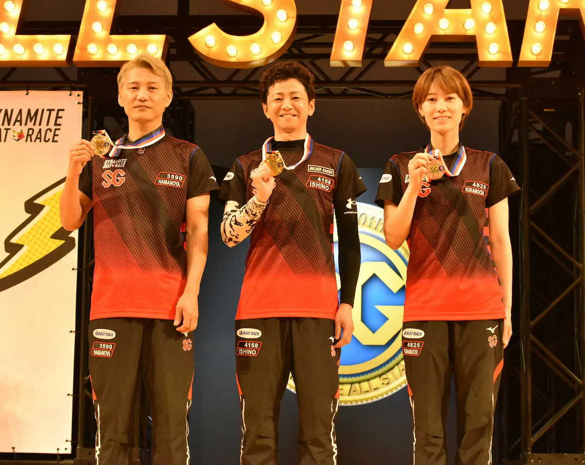 遠藤エミに続く快挙とはならなかった。女子史上5人目(6回目)のSG優出を果たした倉持莉々(29)は優勝戦3着。「足は良かったと思う。この優勝戦を楽しもうと思っていたし、ワクワクして臨めた」と強心臓ぶりを示したが、スタートで後手に回ってしまった。もっとも遅いコンマ17だ。「スタートですね。あとは深谷さんが先行しているように見えて、1マークもちょっと焦ってしまった。道中はしっかりと3着を守ろうと思って走った」。それでも瓜生正義との激しい3着争いを制して舟券に貢献したことは、大いに称えてもいい。SG優勝戦3着までに贈られる記念のメダルも、倉持の胸でピカピカに輝いていた。「凄くいい経験をさせてもらいました。最初で最後のメダルだと思います。良かったです」と最後は充実感あふれる笑顔。目標の予選突破をはるかに越える大活躍は大きな財産となる。