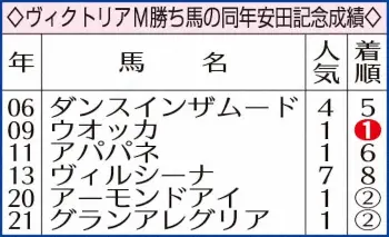 《“鬼門”突破なるか》グレード制を導入した84年以降、安田記念の連覇はヤマニンゼファー(92&93年)、ウオッカ(08&09年)の2頭のみ。また、ヴィクトリアマイルからの連勝はウオッカ(09年)のみ。20年アーモンドアイ、21年グランアレグリアですら2着に敗れている。ソングラインは“鬼門”を突破することができるのか。