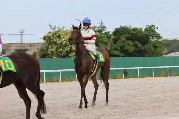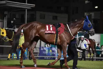 ウッドチップコースで追い切るレーベンスティール(撮影・郡司修)