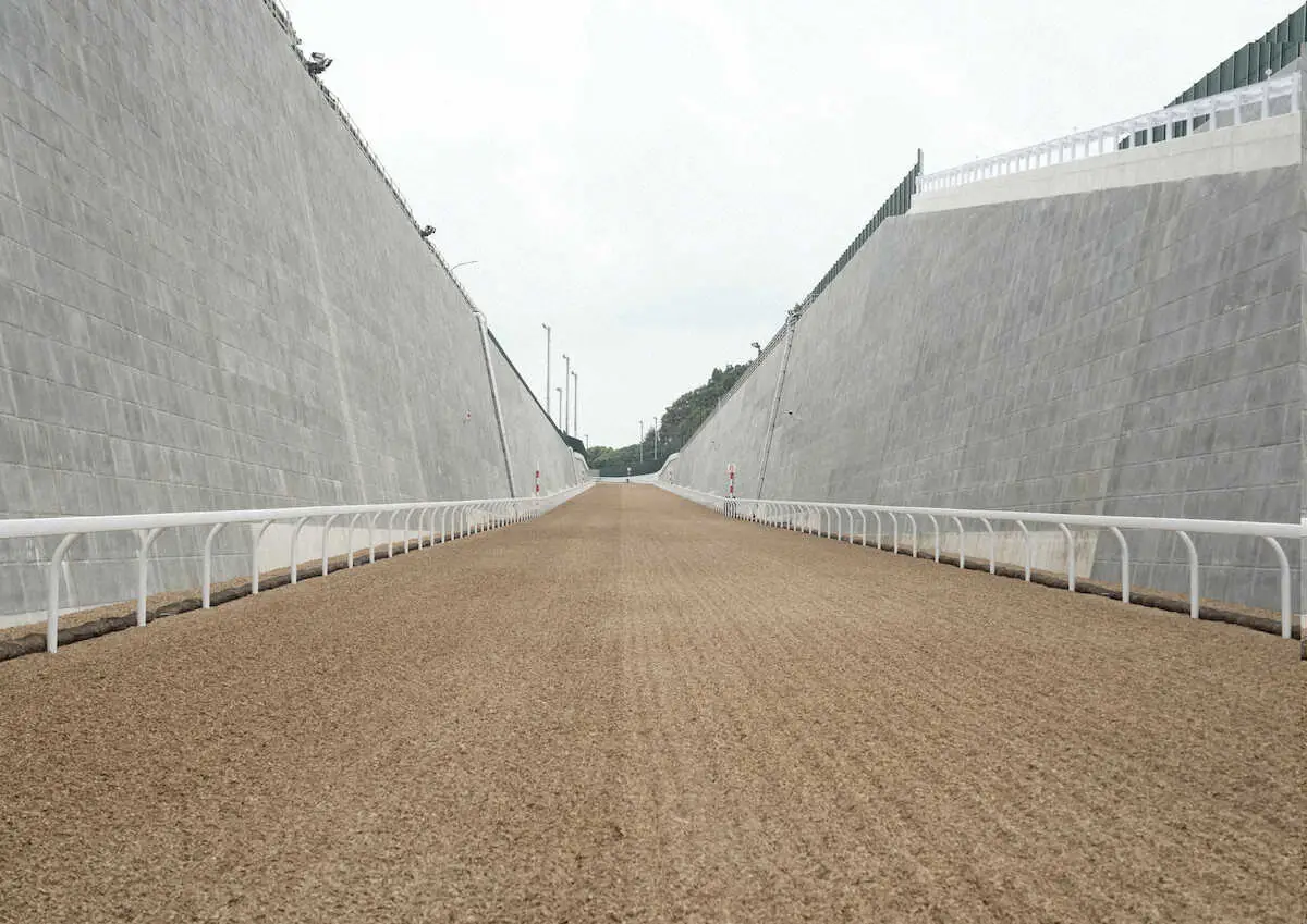 ゴール後の減速区間を延ばすため、カーブしてからゴールまでの距離は短縮。「馬を止める距離が長いのはありがたいが、考えて乗らなければならない部分もある」と今後の運用を思案していた。26日にプレオープンし、10月4日から本格運用が始まる。