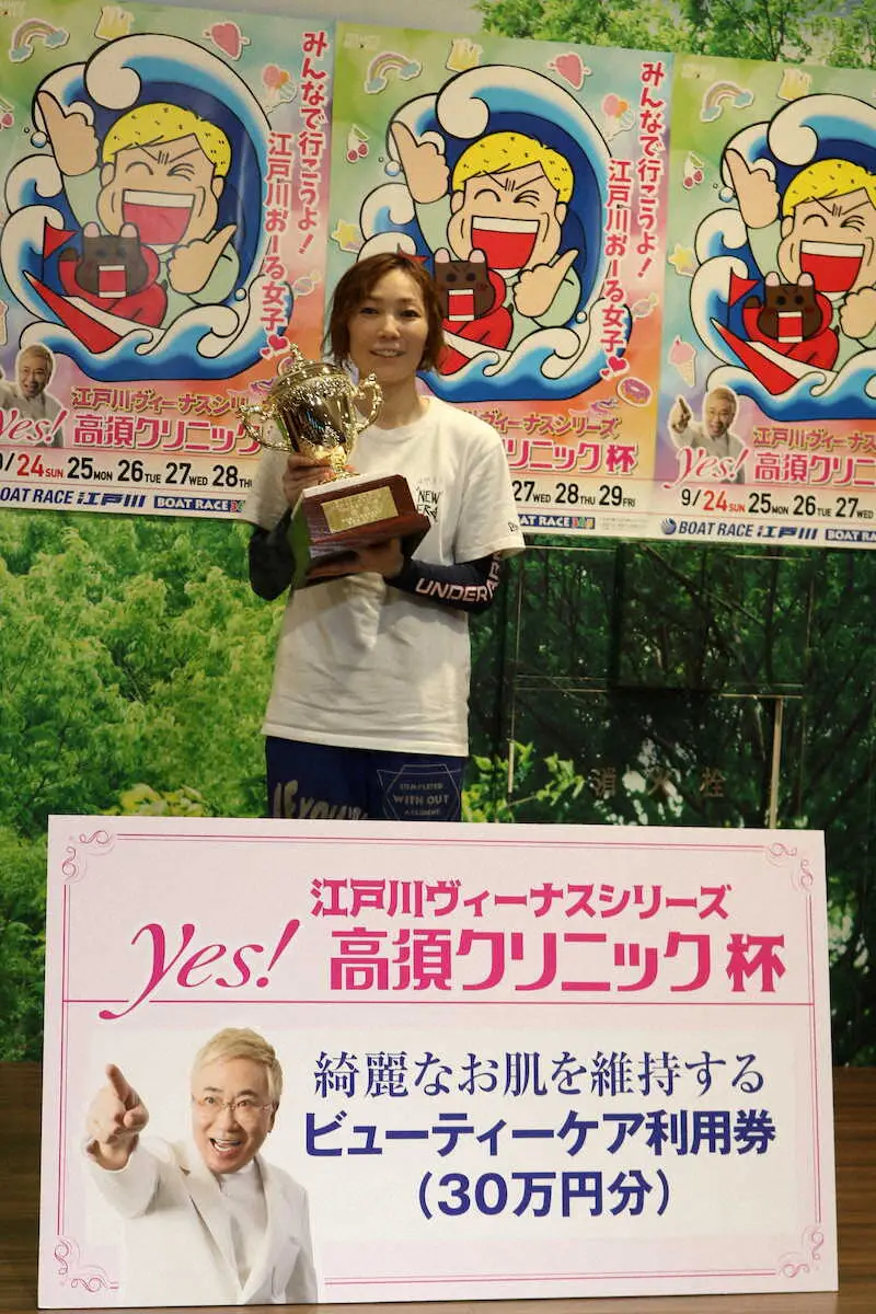 今年6月の当地前回、1号艇から2周1Mで長嶋万記に逆転を許し悔しい準優勝。「レース場に行く前から緊張していた。意識したら優勝戦にも乗れないと思い“1走1走、集中するだけ”と言い聞かせていた。最後は前回の失敗が生かされました」。見事なリベンジ戦をやってのけた。