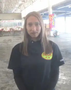 紫色のスーツに身を包んだ溝端と、黒光りしたエイムハイの黒鹿毛の馬体はピタリとマッチ。「品が良くて、おとなしくて、乗り心地が凄くよかった」と乗馬をたっぷりと楽しんだ。