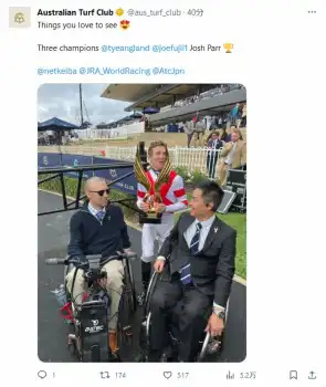 このレースには武豊が騎乗予定だったが、10月29日に負傷したため、ジョシュア・パーが代打騎乗。「あなたとあなたの国のためにベストを尽くします」と武豊と日本のために奮闘を誓っていた地元の名手が、大仕事を果たした。