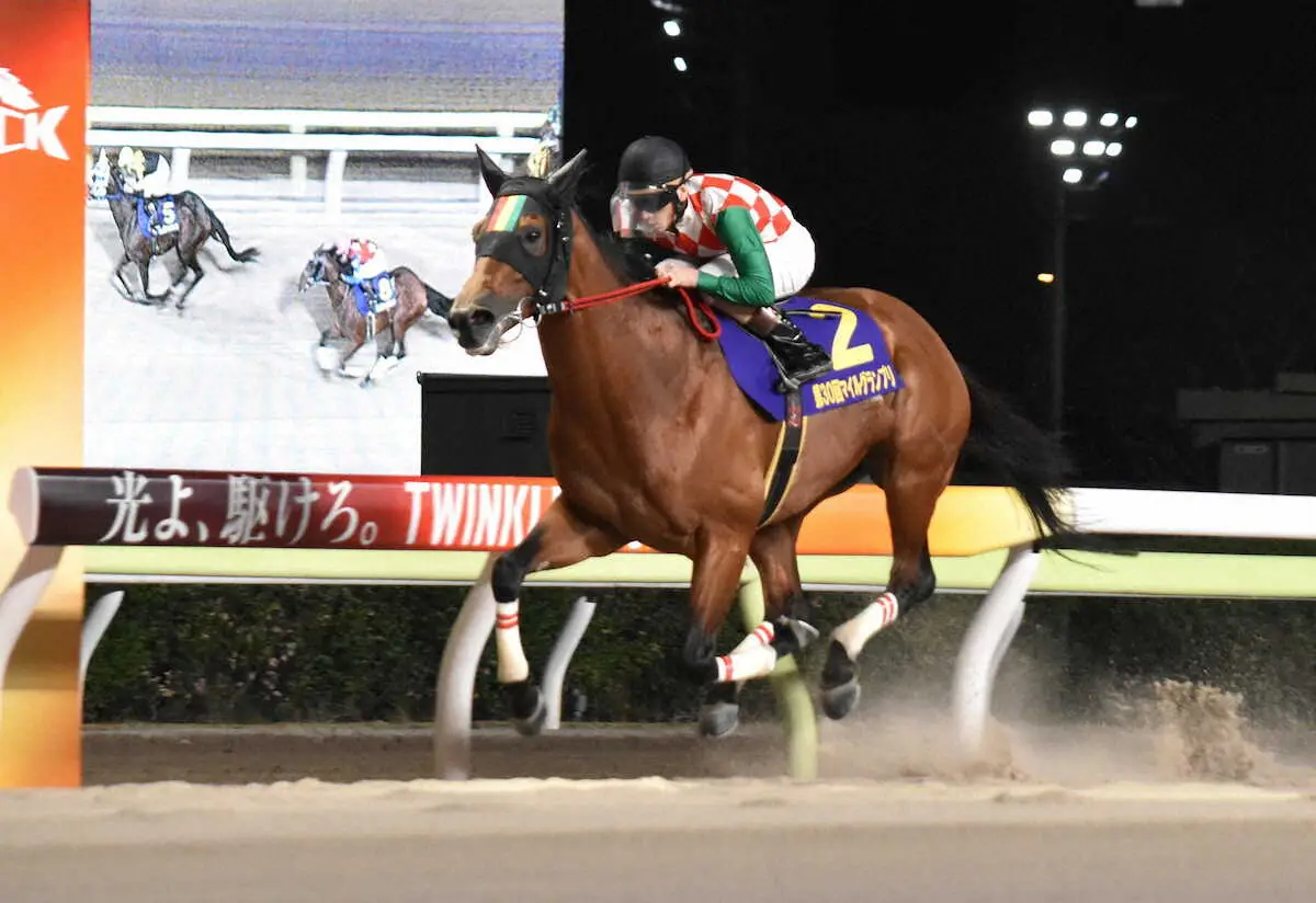 「そこがこの馬のいいところ」と矢野が振り返ったように抜群のタイミングでゲートを飛び出すとサッとハナを奪って逃げの態勢を確立した。アイウォールが2番手にポジションを取るともう隊列は動かない。淡々と流れて、3、4コーナーでも後続が来ない。すんなり先頭で直線に入ると手綱を絞って残り200メートルから右ステッキの連打。残り100メートルでセーフティーリードをつくると最後は手綱を抑える余裕を見せてVゴールに飛び込んだ。