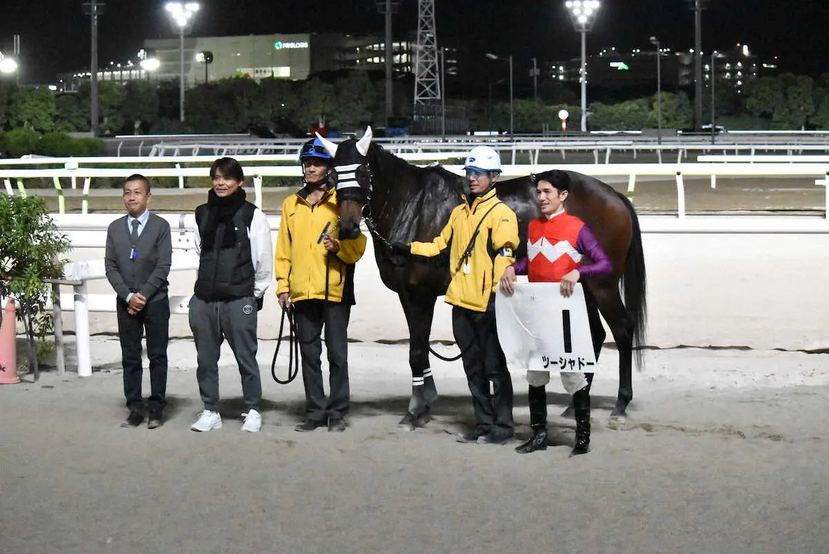 小沢師は「砂の入れ替えの影響か、今日は逃げ馬が止まる感じがしたので、できれば逃げたくはなかった。それでも勝てたのは収穫だった」と興奮気味に振り返った。師はオグリキャップの活躍がきっかけでホースマンを目指したという。ツーシャドーのオーナーはバンブー牧場。89年のマイルチャンピオンシップでオグリと死闘を演じたバンブーメモリー(名義は竹田辰一氏)と同じだ。「お母さんのブラックショコラを預からせてもらったのが、ご縁の始まり。感慨深い。南関東の重賞はまだ獲ってないので、この馬で獲りたい」と力を込めた。本番まで約1カ月半。一気にシンデレラへの階段を駆け上がる。