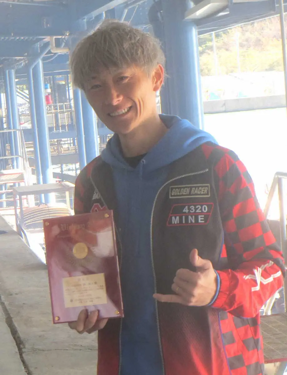 10月29日の蒲郡SGボートレースダービーで史上34人目の全国24場制覇を成し遂げた峰竜太(38=佐賀)の表彰式が21日、ボートレース三国のピット内で行われ、その栄誉を称えてBOATRACE振興会会長賞として金貨1オンスおよび記念盾が授与された。