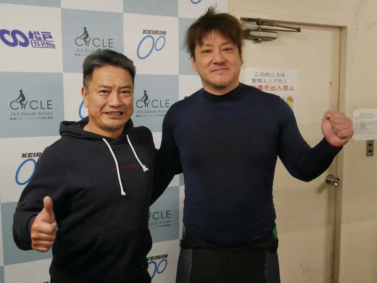 <松戸競輪場>師弟ワンツーを決めた小埜正義(右)と宮倉勇
