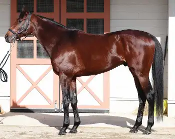 半面、キングカメハメハ産駒にしては筋肉量が少なめ。毛ヅヤは良好ですが、腹周りは少し細い。ハミを気にして鼻先と尾に力を入れています。リラックスしてほしい。