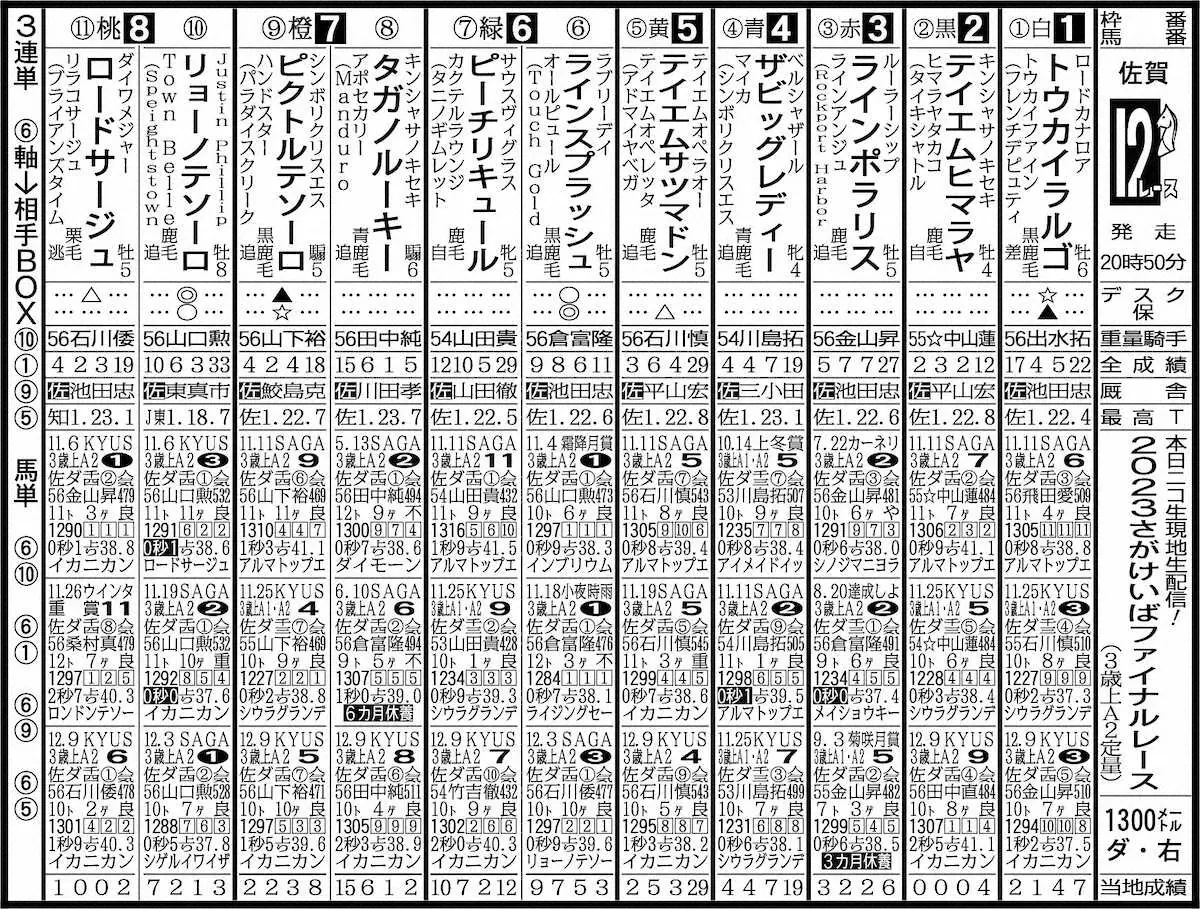 【佐賀12R・2023さがけいばファイナルレース】ラインスプラッシュが軸