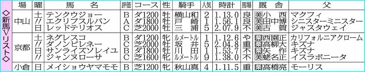 そんな中、センスの良いレースを見せたのは良馬場だった土曜中山ダート1800メートル戦を勝ったエクリプスルバン。すんなりと好位3番手に取り付くと、勝負どころで逃げ馬に並びかけ、直線抜け出して3馬身差の快勝。ダート路線での出世が見込めそうだ。