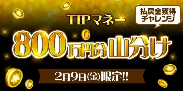 ★①【2月9日限定!】TIPマネー800万円分!払戻金獲得チャレンジ!