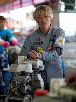 4日目は強風による水面状況悪化のため安定板装着、本番レース2周回と周回を短縮して実施中。4Rは11メートルのホーム追い風のコンディション。1Mは先マイ艇の挙動が乱れるなどもつれた展開となり、6号艇の土屋が大外からブイ際を差し抜けた。