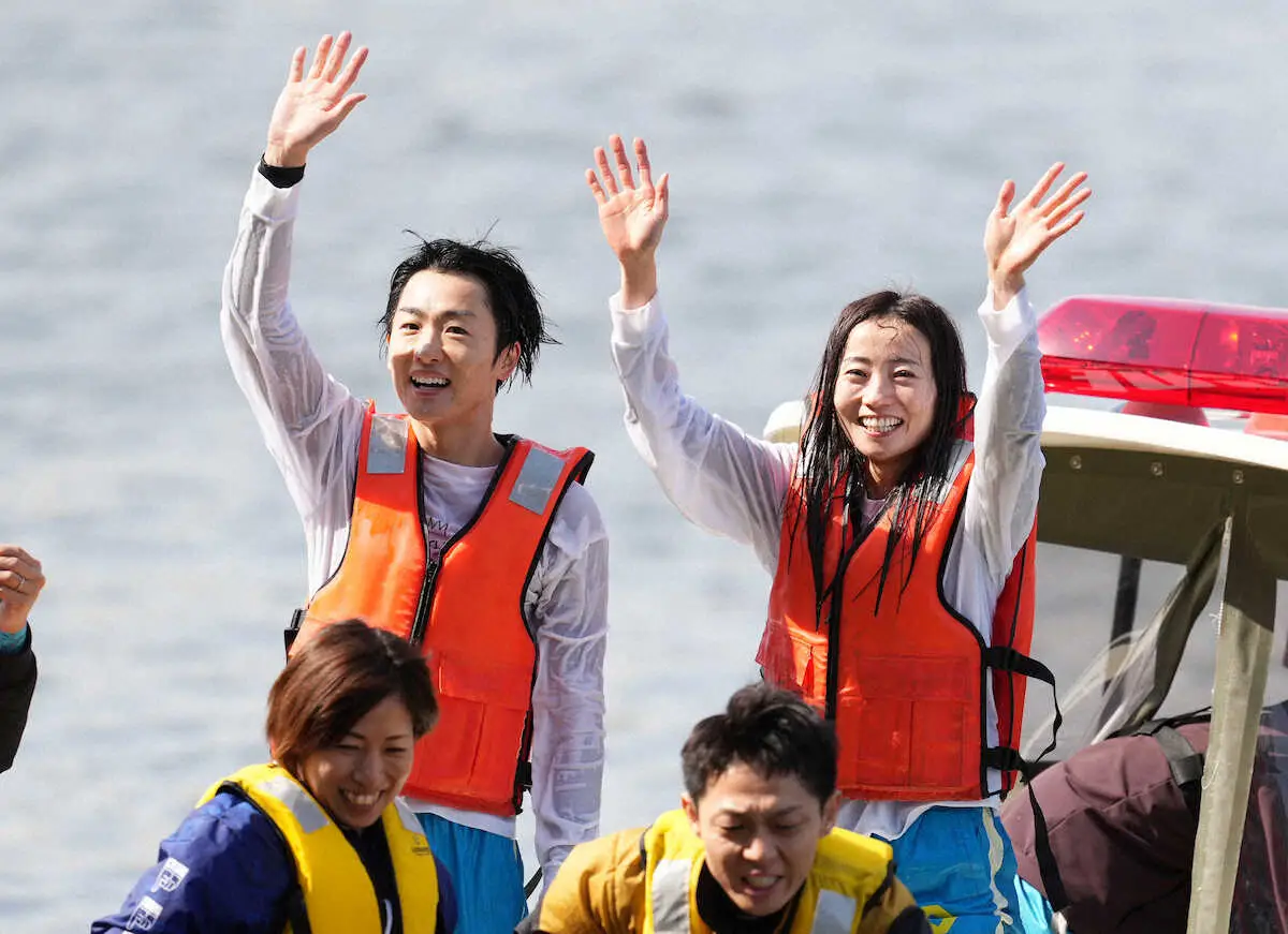 レース後には水神祭が行われ、夫の中田竜太(埼玉=35)とともに水面に落ちた。