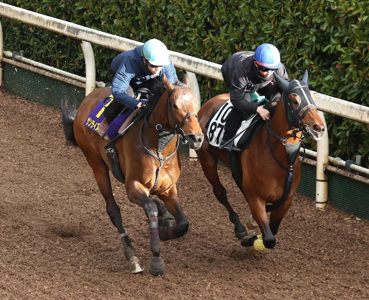 年明け初戦の若駒Sを制した後、右トモの違和感で弥生賞ディープインパクト記念を回避したサンライズジパング(牡=音無)は美浦から駆け付けた菅原明を背に坂路へ。スマートルシーダ(6歳2勝クラス)と併せ、自己ベストを0秒4更新する4F50秒4(1F12秒2)で併入。