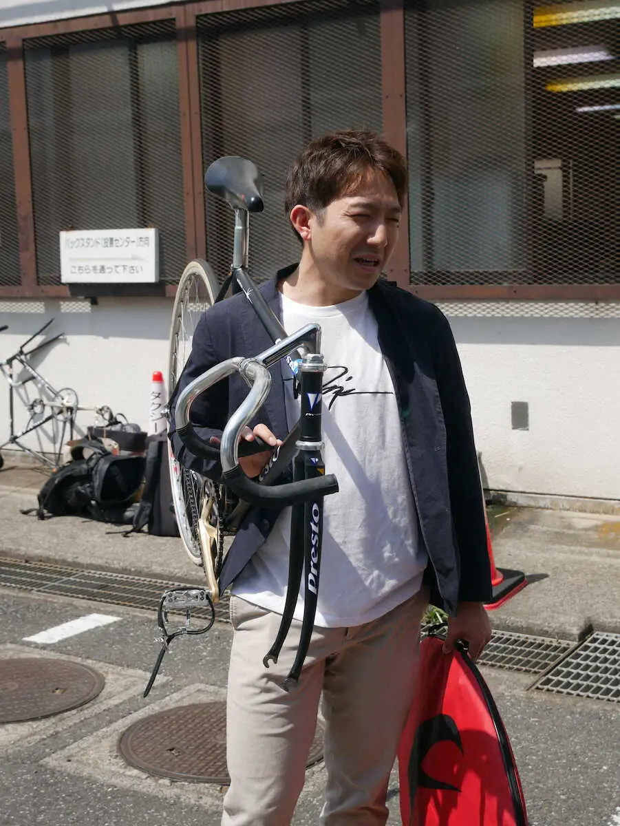 恩田淳平(33=群馬・100期)がピカピカの自転車を持ち込んだ。「新車です。一応、2台持って来ているが、まずは初日使ってみようと思う」と新相棒を投入する。今開催後は“G1の中のG1”、日本選手権競輪(ダービー)が待っている。「G1ではタイムが違うし、これくらい硬い自転車を乗りこなさないと駄目。昨年はG1に何となく参加できたが、今年はそうも言っていられない」とトップレベルでの勝負を見据えた。