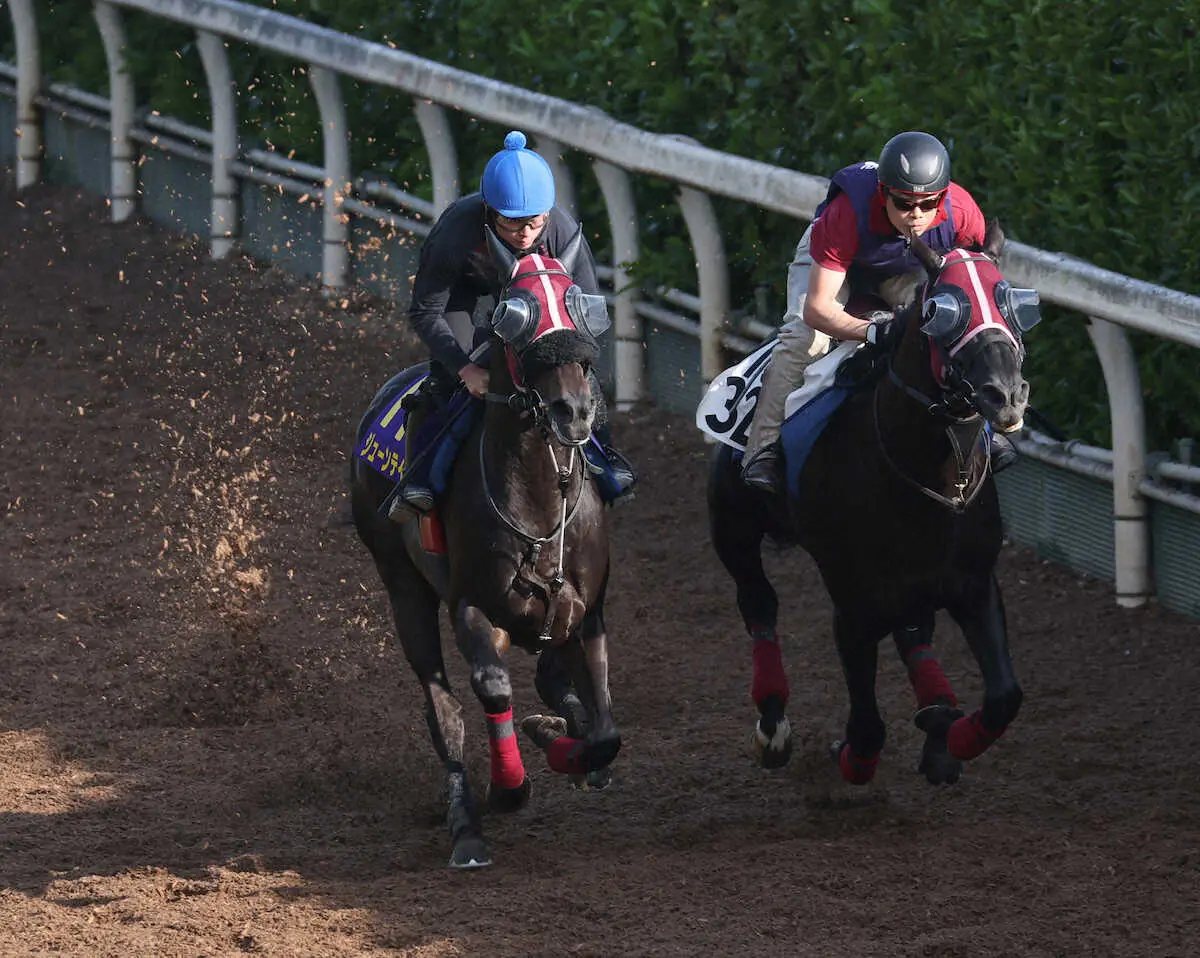 武英師は「土曜(18日)に坂路で4F52秒台の負荷をかけているのでオーバーワークにならないように。57秒ぐらいを予定していたので完璧。大満足」と好ムード。距離が延びてコースも替わるが「前走の後傾ラップは今の東京に合う」とイメージした。