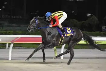 田村調教助手とハヤヤッコ(撮影・平松さとし)