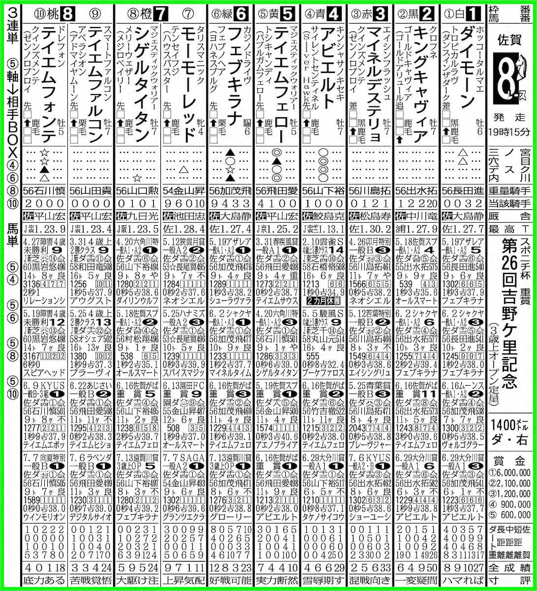 【佐賀8R・第26回吉野ヶ里記念】じゃい本命はテイエムフォンテ