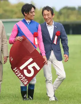 春の無念を振り払う逃走劇だった。ダービーを左後挫石で出走取消となったメイショウタバルがひと夏を越して成長した走りを見せた。重賞2勝目。検量室前に戻ってきた浜中は石橋師に迎えられて笑みがこぼれた。「精神的な部分がフレッシュになって、少しずつでしょうけど、大人になってきているのかなと思います」と喜びをかみしめた。