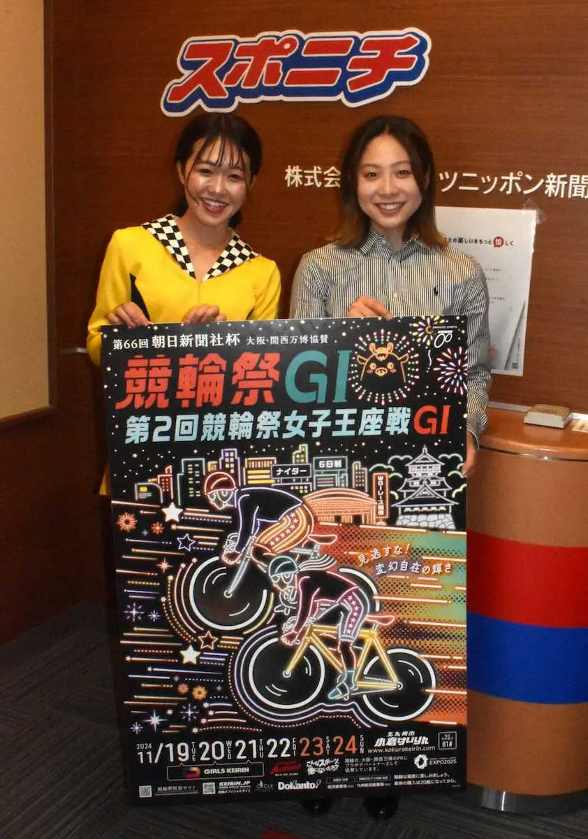小倉競輪で19~24日に開催されるG1「第66回競輪祭」・G1「第2回競輪祭女子王座戦」のPRで小倉けいりんキャンペーンユニット・スペースエンジェルズの黒田ふみかと、日本競輪選手会福岡支部の内野艶和(つやか、22)が6日、スポニチ西部総局を訪れた。