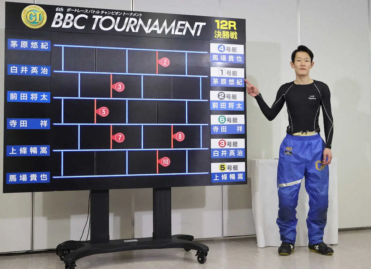 ボートレースとこなめのプレミアムG1「第6回ボートレースバトルチャンピオントーナメント」は25日の3日目11、12Rで準決勝戦が行われ、26日の最終日12Rに争われる決勝戦メンバーが出そろった。中心は〝スーパーアミダマシーン〟で1号艇をつかんだ茅原悠紀だ。