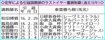 音無師はこれでJRA重賞90勝。JRA通算994勝とし、1000勝の大台を視界に捉えている。「(僚馬の)ジパングも勝たせてあげたかった。同着が良かったかな」とワンツーに照れ笑いしながら「あと1カ月しかないから欲張らず、最後までやりたい」と気持ちを新たにした。この勝利でフェブラリーS(2月23日、東京)の優先出走権を得て、次走については「まだ決定していない」としながらもラストJRA・G1を視野に入れているだろう。トレーナーとして最後まで管理馬と真摯(しんし)に向き合い、きっちり仕上げていく。