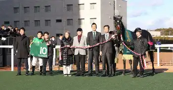 西村淳&杉山晴師のタッグは昨年スプリンターズSをルガルで制したのも記憶に新しく、同厩舎の馬には調教を含めて騎乗する機会が多い。「杉山晴厩舎で、ずっと間近で見ていた馬でした。いい馬に乗せていただき、こうして結果を出せて良かったです」と笑みを浮かべた。
