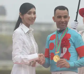 <桜花賞>プレゼンターの黒木瞳(左)と握手するモレイラ騎手(撮影・亀井 直樹) Photo by スポニチ 【桜花賞】エンブロイダリーV!重賞連勝で桜の女王に 連覇のモレイラ「素… ギャラリーで見る この記事のフォト 2025年04月13日の画像一覧 もっと見る 2025年04月13日の画像をもっと見る