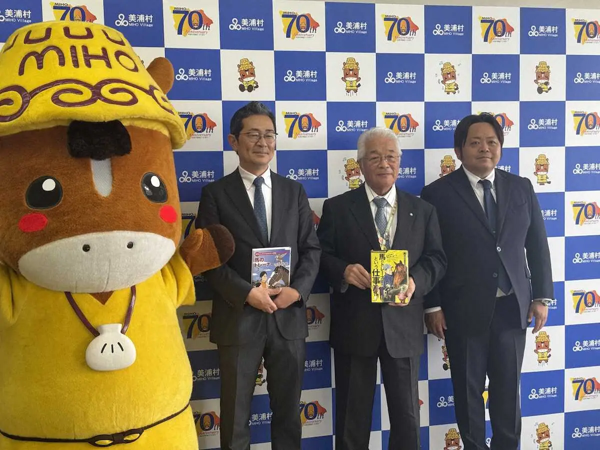 中島村長は「たくさんの子供たちに読んでもらいたい。本をきっかけにこの村から競馬業界に入ってほしい」と感謝。尾関師は「世界共通で言葉がいらない。馬と触れ合うことで心のつながりを感じることができる。幸せな仕事です」と魅力をアピール。本にインタビューが掲載された青木師は「平凡で単調な仕事ですが、積み重ねと繰り返しの先に失敗や成功がある。多くの喜びを味わえる。ダイナミックでやりがいのある職業です」とメッセージを送った。寄贈された本は地域の小中学校や美浦村中央公民館などに配置される。非売品だがウェブ上で公開(アドレス別掲)され無料で読むことができる。